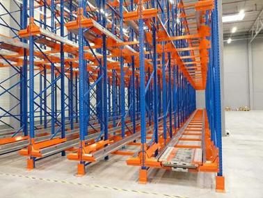 穿梭式货架系统是由货架、台车以及叉车组成的高密度储存系统